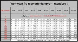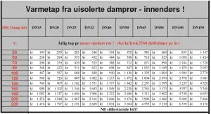 Tabell som viser tap med uisolerte rør