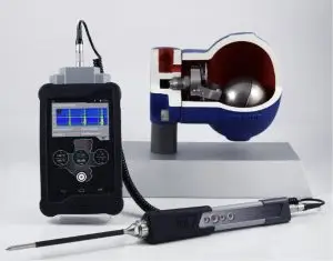 Ultrasonisk måleapparat som gjør at man kan måle om det er lekkasjer i kondenspotter, sikkerhetsventiler eller andre ventiler.
